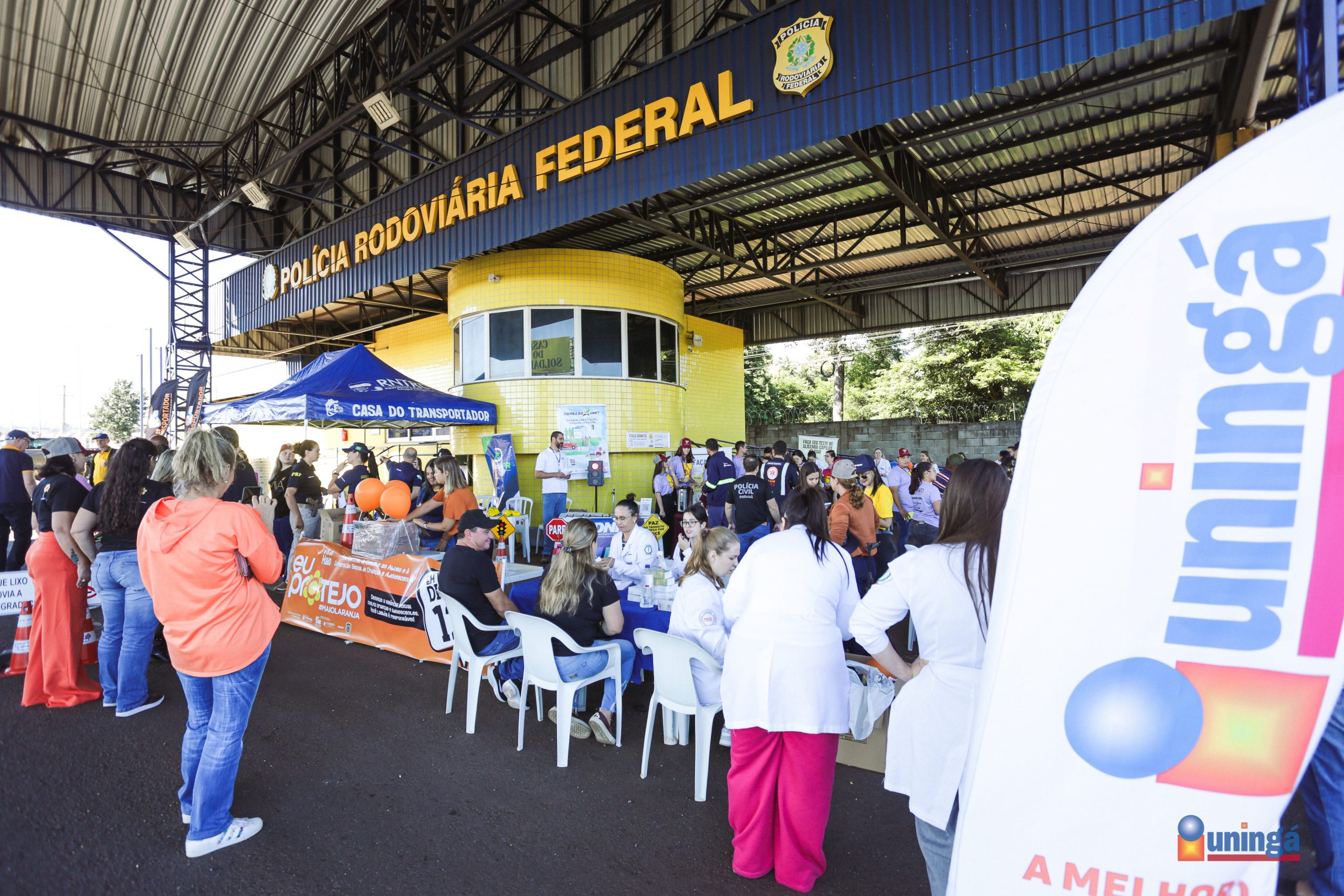 Na manhã desta quinta-feira (8) os cursos de Enfermagem, Farmácia, Medicina e Nutrição da UNINGÁ marcaram presença em uma importante ação educativa realizada na Unidade Operacional da Polícia Rodoviária Federal (PRF) de Mandaguari. Promovida pela Corporação em parceria com o Núcleo da Infância e Juventude, e Polícia Civil; a atividade fez parte da Campanha Maio Amarelo 2025 e esteve integrada ao Maio Laranja.