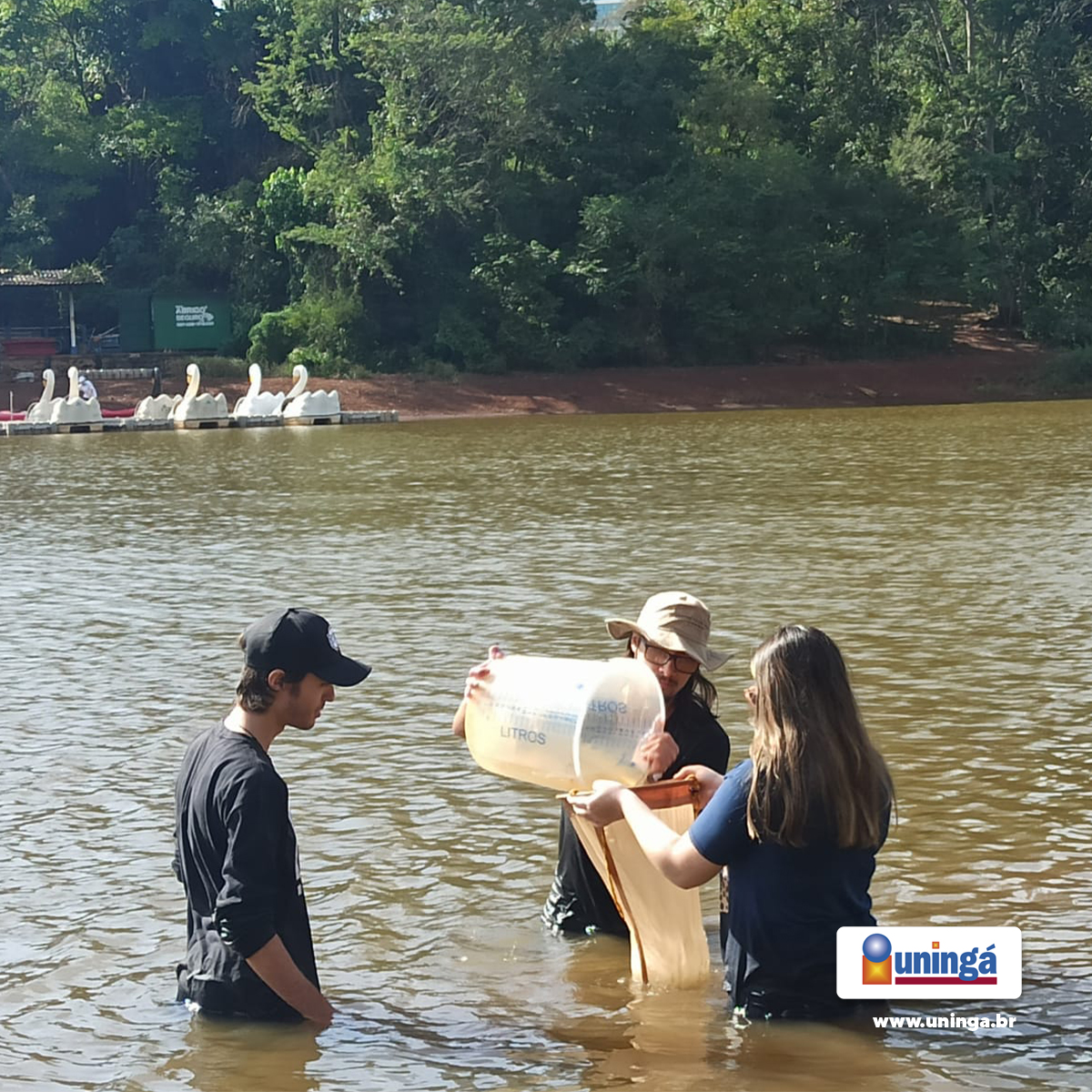 O estudo não encerra aqui, o material coletado foi levado ao laboratório para a identificação dos organismos presentes no lago, análise e elaboração de relatório para a disciplina.