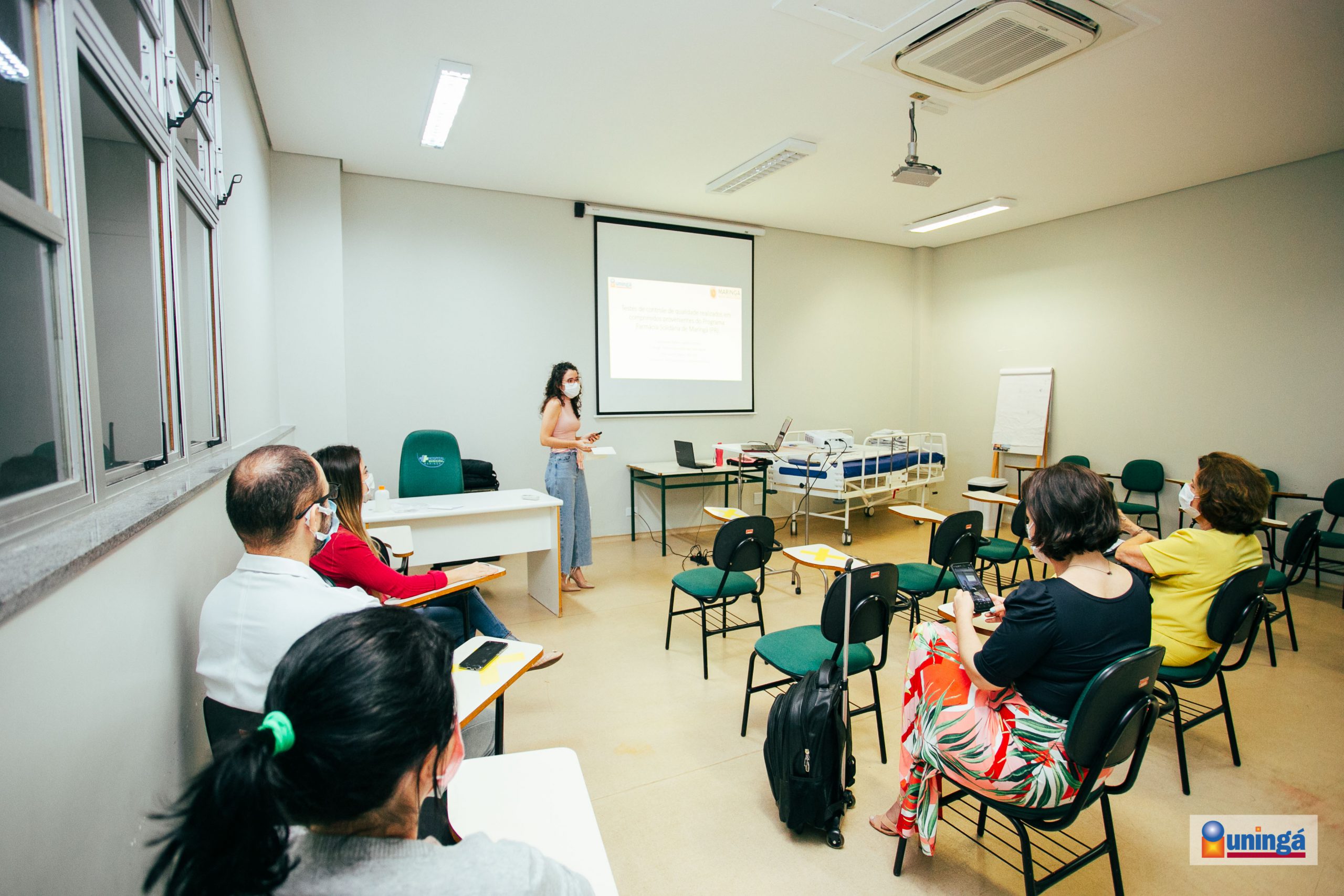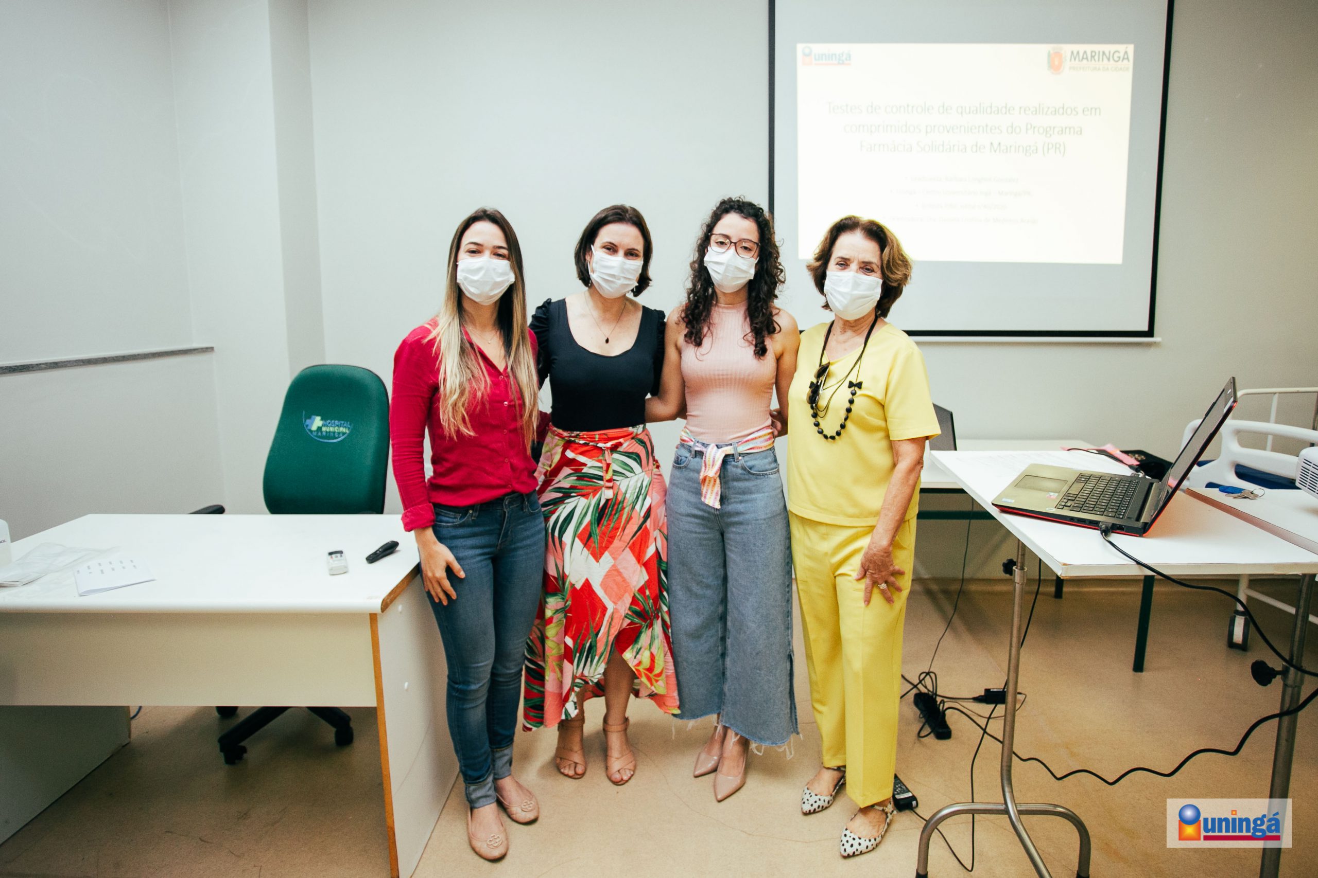 Ontem (19/11), a aluna do 4° ano do curso de Farmácia Bárbara Longhini juntamente com a sua orientadora Dra Daniela Cristina de Medeiros Araújo, realizaram no Hospital Municipal de Maringá a apresentação de pesquisa sobre testes de controle de qualidade de comprimidos provenientes do programa Farmácia Solidária de Maringá.