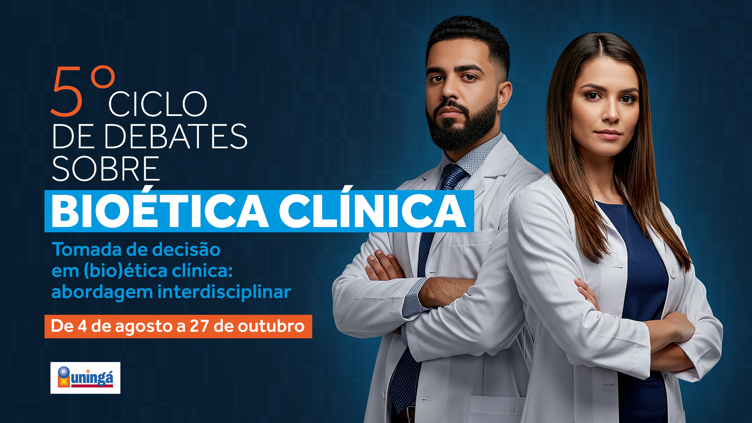 Reconhecida pela qualidade de ensino, a Uningá oferece no curso de Medicina uma formação avançada e completa, com experiências práticas que ultrapassam o conteúdo teórico e preparam os futuros profissionais para os desafios reais da prática clínica. Entre os dias 4 de agosto e 27 de outubro de 2025, será realizado o ‘5° Ciclo de Debate sobre Bioética Clínica: tomada de decisão em (Bio)Ética Clínica – abordagem interdisciplinar’.