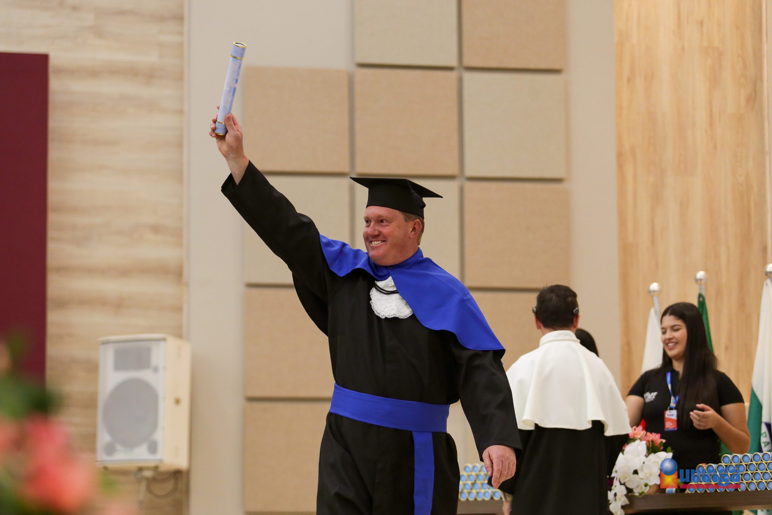 A segunda cerimônia reuniu os diplomados dos cursos de Biologia Bacharelado, Biologia Licenciatura, Biomedicina, Educação Física Bacharelado, Educação Física Licenciatura, Estética e Cosmética, Farmácia, Fisioterapia, Fonoaudiologia, Nutrição e Terapia Ocupacional. A mesa de honra contou com a presença da diretora de Regulação, Bruna Letícia Domingues Molinari, do diretor de Gestão em EAD Ricardo Dantas Lopes e do diretor de Pesquisa e Pós-Graduação, Isaac Romani.