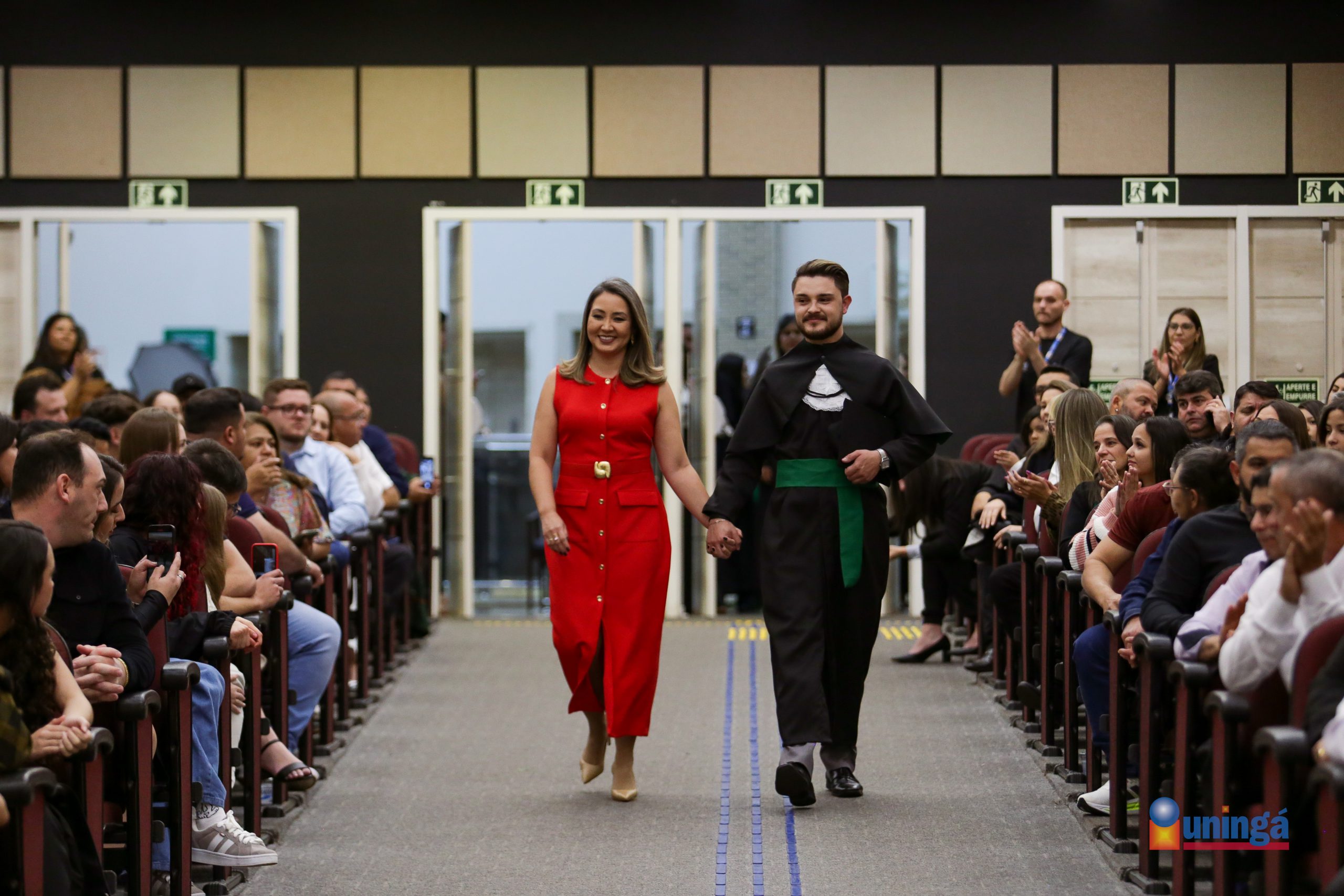 O rito de Outorga de Grau foi realizado em dois momentos distintos. A primeira cerimônia homenageou os concluintes dos cursos de Administração, Agronomia, Arquitetura e Urbanismo, Ciências Contábeis, Design Gráfico, Engenharia de Produção, Engenharia Mecânica, Gestão de Recursos Humanos, Gestão Financeira, Jornalismo, Letras Licenciatura, Marketing, Pedagogia, Processos Gerenciais e Serviço Social. A mesa de honra foi composta pela pró-reitora Gisele Colombari, o diretor de Gestão em EAD, Ricardo Dantas Lopes, o diretor de Assuntos Acadêmicos Rogério Tiyo e a diretora de Ensino e Supervisão Pedagógica Silvia Christiane Goya.
