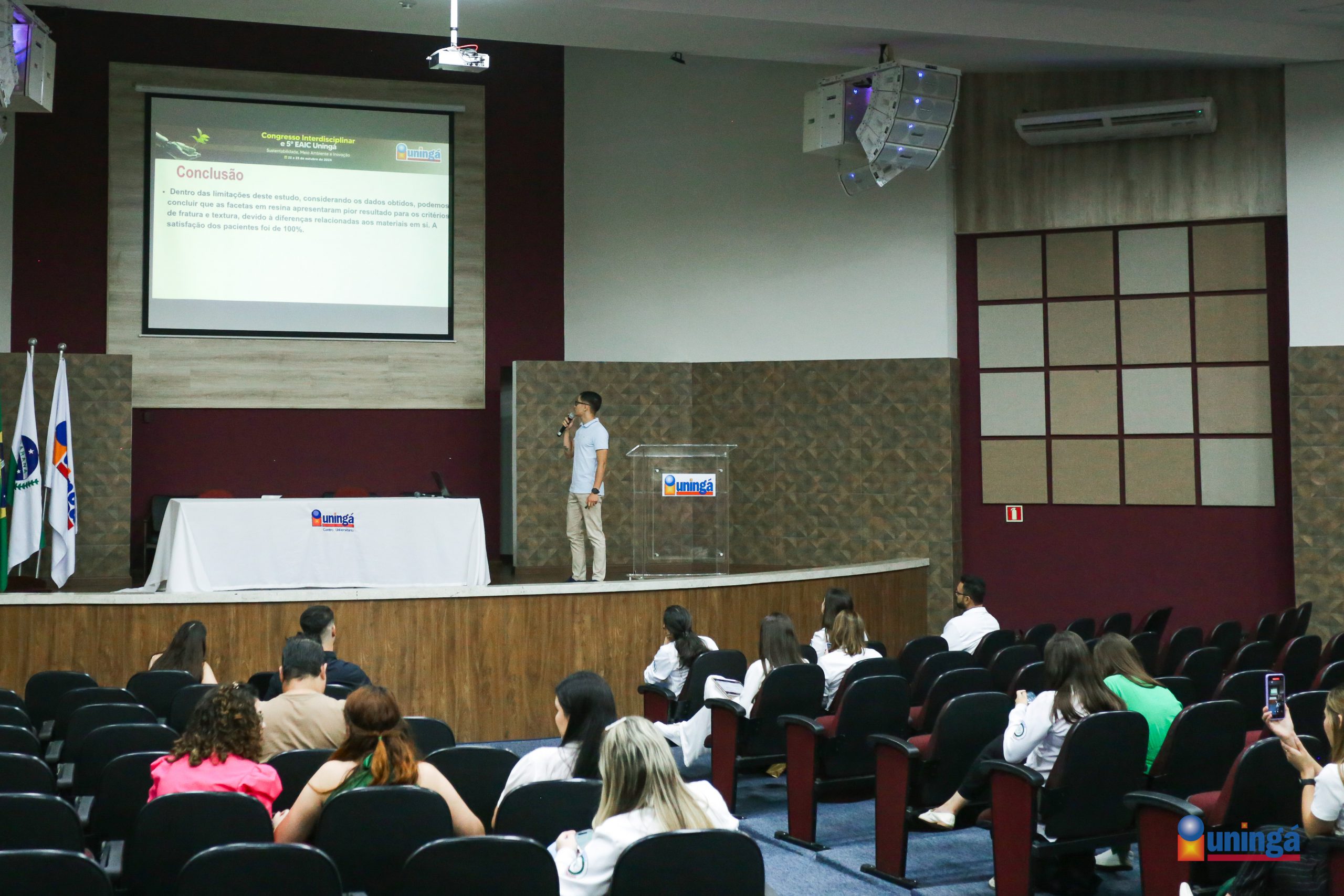 O último dia do Congresso Interdisciplinar realizado na sexta-feira (25) foi marcado pela competência ímpar dos acadêmicos da UNINGÁ. Os discentes apresentaram os trabalhos de Iniciação Científica em formato de banners e painéis orais, tanto nos anfiteatros como nas dependências do Campus.