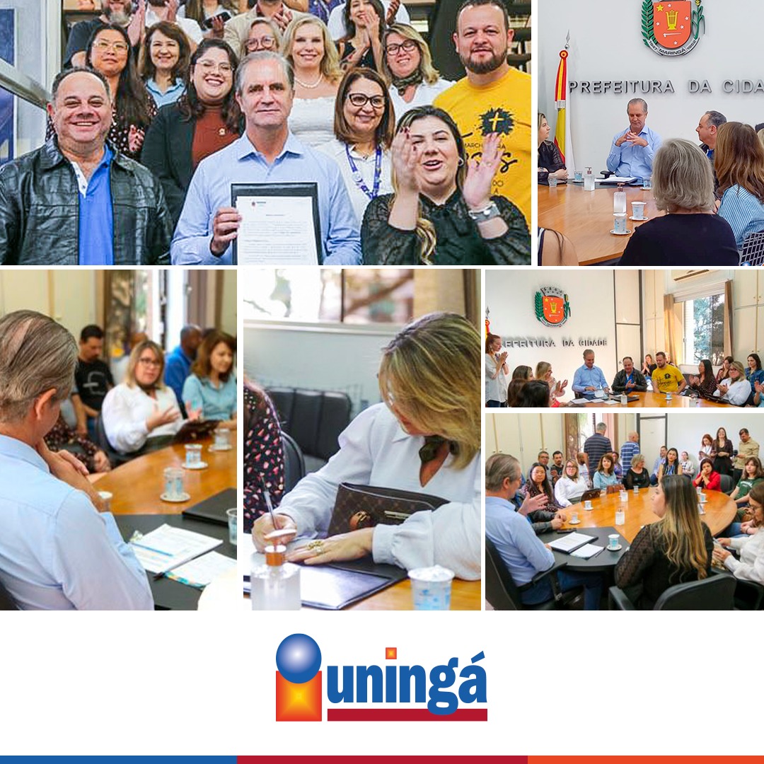 Nesta manhã (25), a Pró-reitora, Dra. Gisele Colombari e o coordenador do curso de Psicologia da Uningá, Prof. Dr. José Roberto Oliveira Santos, participaram da solenidade na Prefeitura Municipal de Maringá para assinatura do Termo de Cooperação Técnica do projeto “Zoeira tem limite”.
