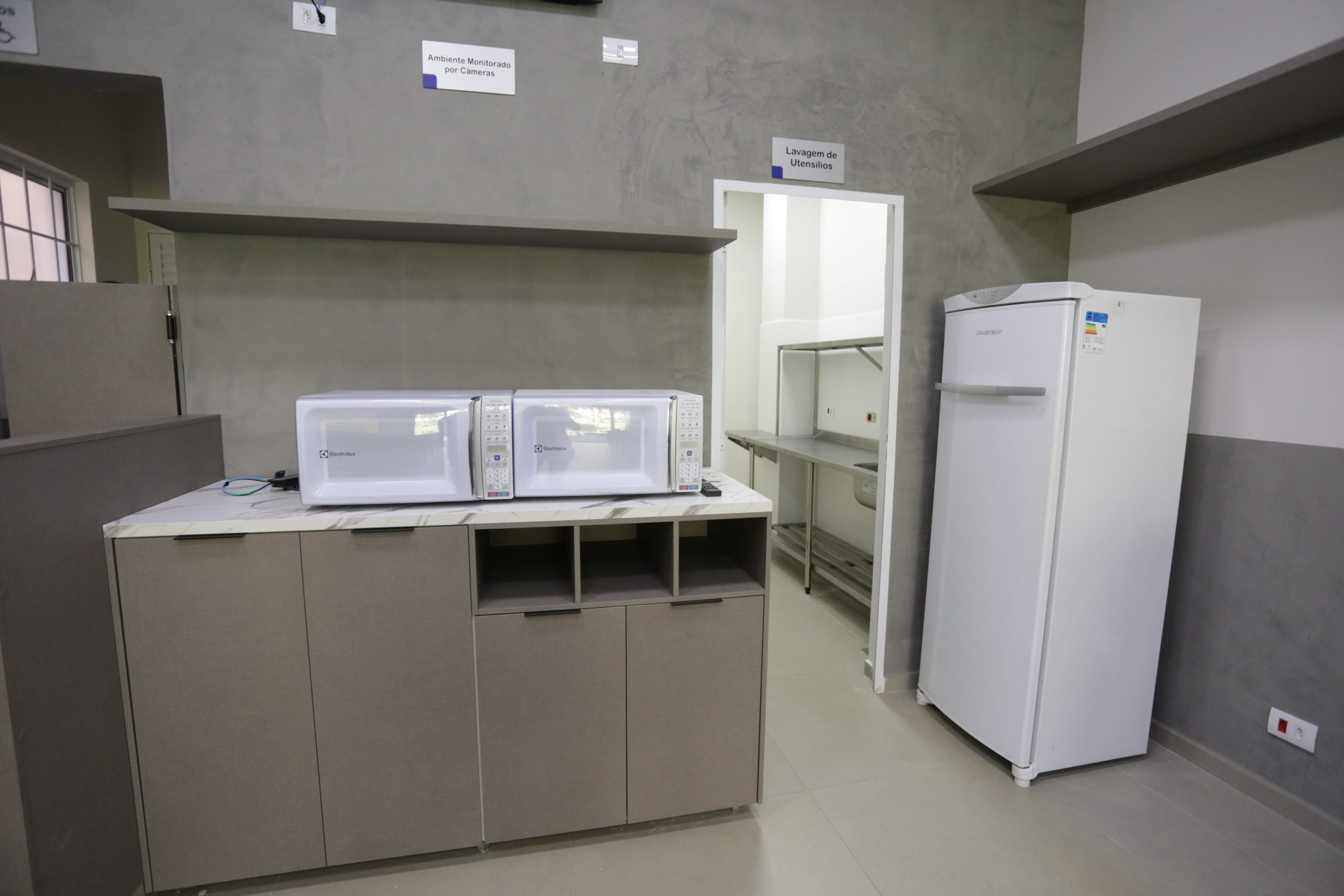 - Hot Food – Espaço projetado para uso exclusivo e atendimento às necessidades diárias dos estudantes. Anexo ao Bloco L, o refeitório conta com ambiente climatizado e monitorado por câmeras, micro-ondas, geladeira, espaço para lavagem de utensílios, sanitários (masculino, feminino e PCD); com horário de funcionamento das 11h às 14h e das 18h às 21h.