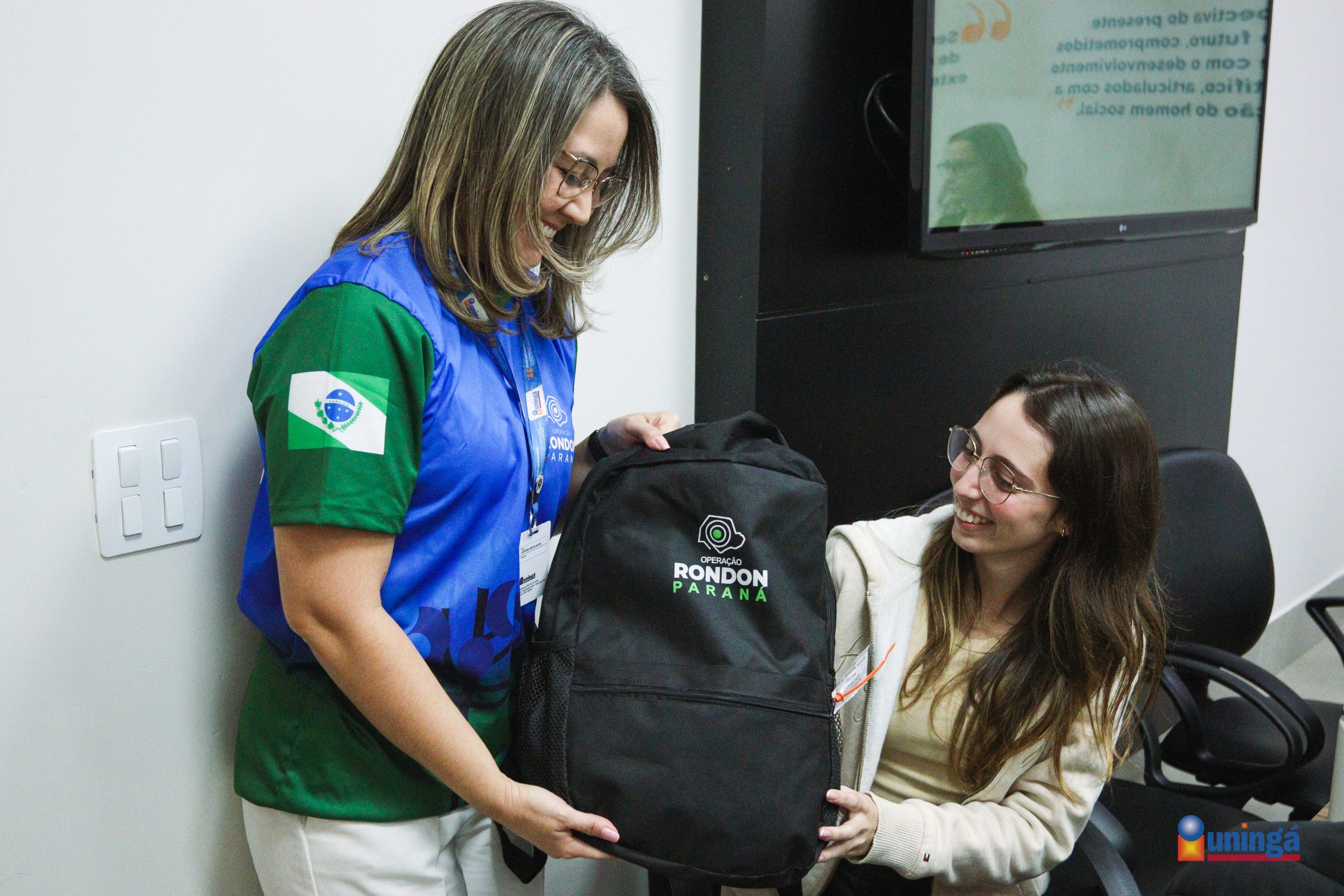 Nesta quarta-feira, 11, a Uningá realizou a entrega oficial dos kits aos estudantes selecionados para a Operação Rondon Paraná 2025, em um encontro marcado por entusiasmo, engajamento e espírito de cidadania. A atividade foi coordenada pela pró-reitora, Gisele Colombari, diretora de Supervisão Pedagógica, Silvia Christiane Goya; e coordenadores de cursos que receberam os acadêmicos rondonistas e prestaram orientações detalhadas sobre as próximas etapas da operação.